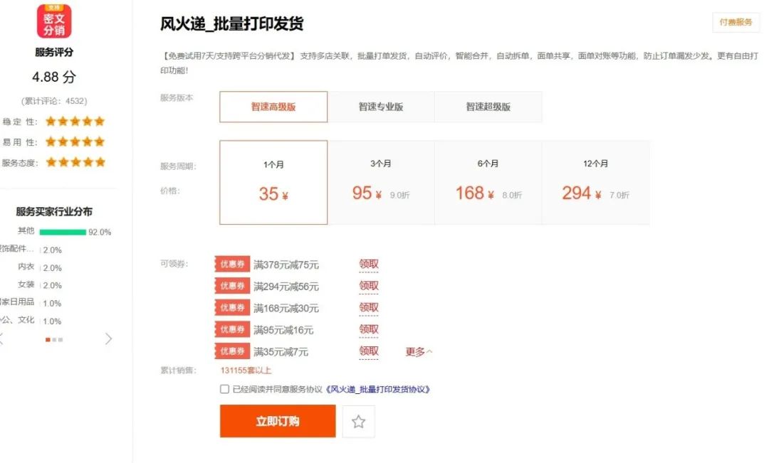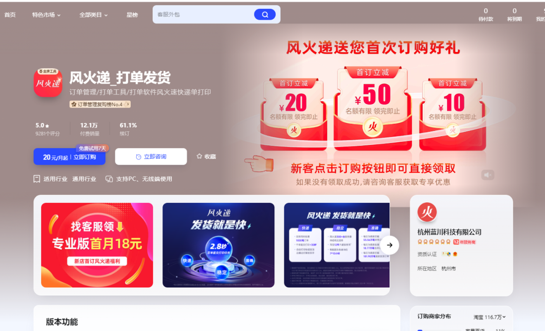 淘宝风火递应用新客,可找客服领取18元首月专业版的特价优惠,还可以享受其他返场券福利!