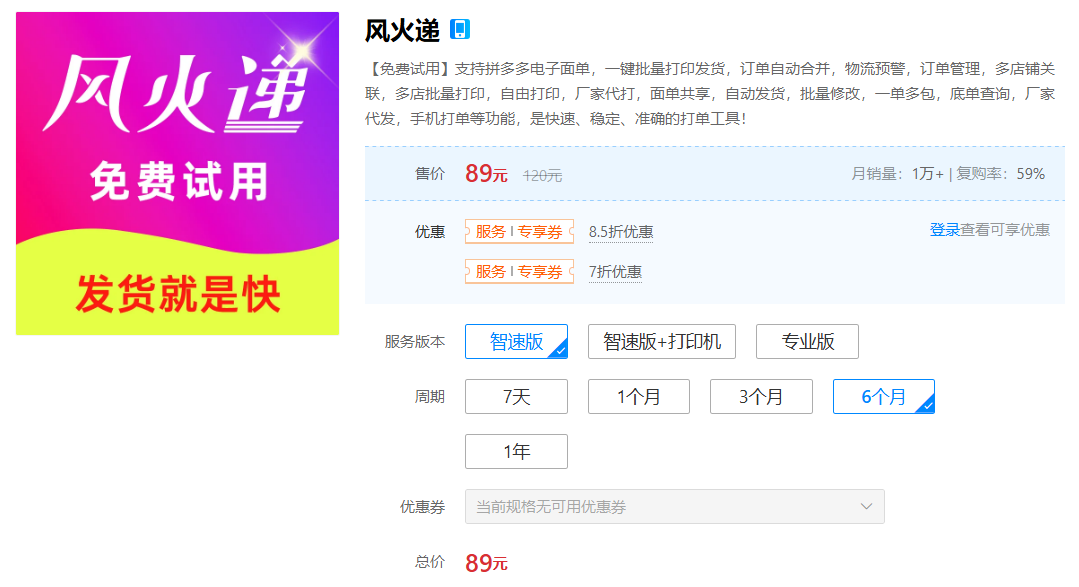 参与方式:进入拼多多服务市场,点击风火递详情页,即可自动领取购买。