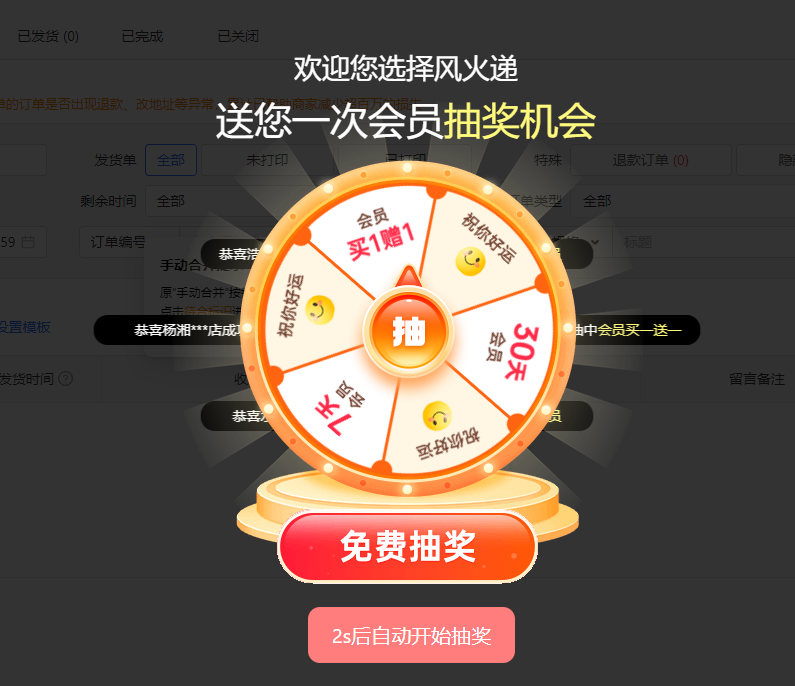 抖店风火递应用新客,登录软件即可参与抽奖活动,免费30天会员等你来拿,还可以享受其他福利!
